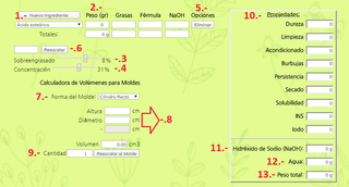 Calculadora de saponificación para la elaboración de jabones artesanales. Peso del producto tal cual se va a utilizar en la receta.
